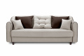 Диван прямой Муссон 2 отличная мебель для повседневного использования. Главной отличительной особенностью являются высокие подлокотники. Они плавно переходят из обычных подлокотников в спинку кровати. Таким образом, получается цельный внешний вид мебели. Подлокотники вместе с сиденьями обиты мягким и упругим материалом. Это позволяет комфортно чувствовать себя продолжительное время. Диван легко трансформируется в кровать. Такое стало возможно благодаря конструкции типа «книжка». Она позволяет быстро разложить обычный диван в большую кровать.