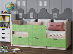 Детская кровать Юниор-9 1,6 МДФ цвет Салатовый металлик / Ясень шимо светлый