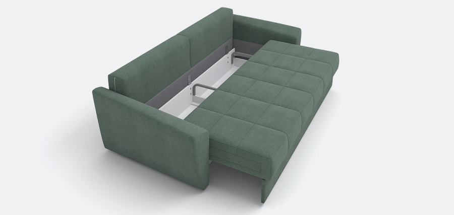 Два варианта конструктива: сдвижная еврокнижка и пантограф. Сдвижная еврокнижка имеет два положения для комфортного и полноценного отдыха: стандартное и лаунж. В последнем варианте сиденье дивана легко сдвигается вперёд, формируя удобную глубокую посадку. Механизм пантограф имеет «шагающий» принцип работы – не портит напольное покрытие. Штанга-синхронизатор позволяет раскладывать диван из любой точки сиденья.