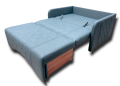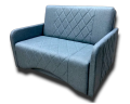 Диван-кровать «Алекс» с габаритами 1320*1000*1000 мм, с тонкими подлокотниками и декоративной отстрочкой в разложенном виде представляет собой полноценную двуспальную кровать со спальным местом средней степени жесткости.
