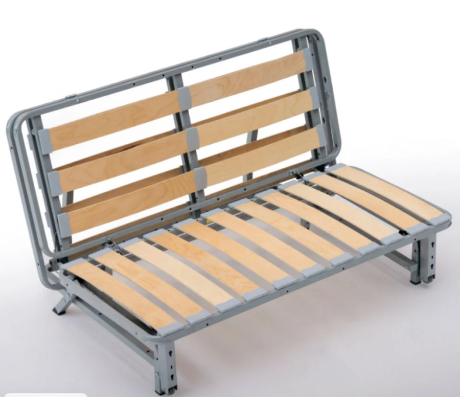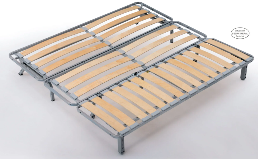 В данной серии механизм трансформации «Аккордеон» представляет собой прочный и надежный стальной каркас. С помощью гибких элементов к каркасу крепятся березовые ламели, которые образуют ортопедическое основание кроватного типа.