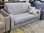 Декоративная строчка защищает ткань от деформации, удобные подлокотники со вставкой из дерева послужат подставкой под чай, кофе или телефон.