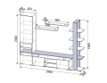 Комплект состоит из пенала, тумбы, стойки с открытыми полками и двух навесных полок. Габариты комплекта ШхВхГ 2483х2000х396 мм. Для предотвращения опрокидывания изделие рекомендуется крепить к стене. Крепеж в комплектацию не входит, приобретается самостоятельно.