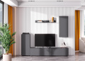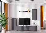 Гостиная «МГС 10» Графит – современная компактная гостиная с ТВ-зоной и модулями для размещения на стене или на полу. В её конструкции предусмотрена тумба под ТВ с двумя отделениями, в которых расположены откидные створки на газлифтах для удобного хранения. Гостиная может быть организована двумя способами: