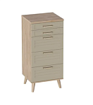 Комод оснащён пятью вместительными ящиками, которые идеально подходят для хранения белья, одежды, аксессуаров и других вещей. Благодаря своей конструкции и лаконичному дизайну, комод гармонично впишется в интерьер спальни и поможет организовать пространство.
