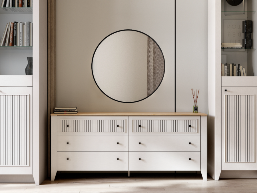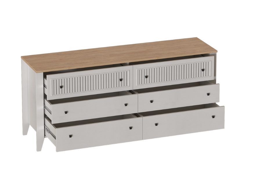 Комод 6 ящ "Валенсия" гостиная цвет Персидский жемчуг / Дуб натуральный светлый