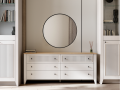 Комод "Валенсия" выполнен в комбинации Дуб натуральный светлый / Персидский жемчуг и состоит из выдвижных ящиков на шариковых направляющих (без амортизаторов), что позволяет удобно хранить вещи и поддерживать порядок в комнате. Он выполнен из безопасных, качественных материалов, что гарантирует долговечность и сохранение первоначального вида на протяжении долгого времени.