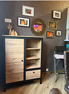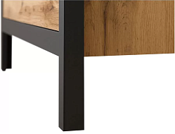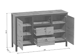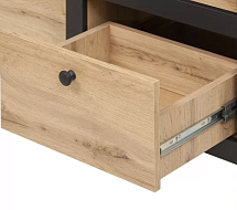 При его производстве использованы материалы ЛДСП и МДФ, в надежности и долговечности, не уступающие древесине. В качестве комплектующих элементов в ящиках применяются шариковые направляющие полного выдвижения. С их помощью найти нужную вещь даже в дальнем углу будет просто. Широкий комод Loft с ящиками – это еще и удобно. Он позволит аккуратно разложить вещи без опасения, что они выпадут, как из шкафа.