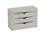 Комод оснащён тремя ящиками на шариковых направляющих. В фасадах ящиков имеются декоративные вырезы, выполняющие функцию ручек.