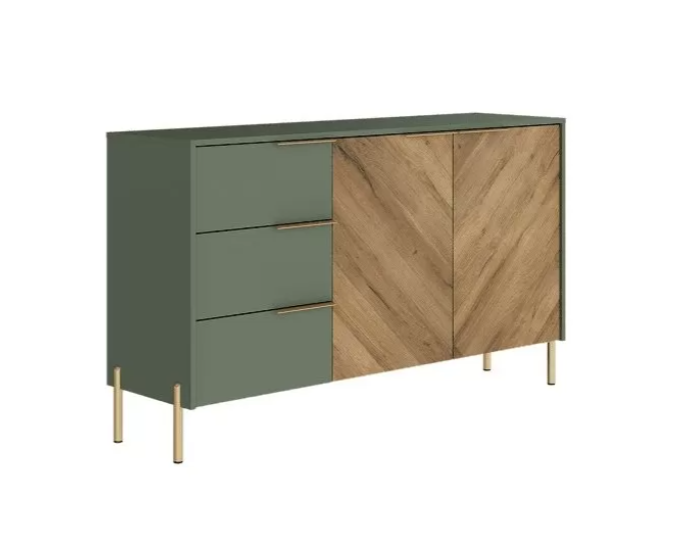 Комод-тумба Сиена KOM2D3S цвет Дымчатый зеленый / Дуб вотан