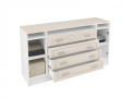 Комод - тумба ТВ КМ-01 'Венеция' - функциональная модель, которую можно использовать как в качестве комода, так и для установки видеоаппаратуры. Фасады четырех выдвижных ящиков и закрытых фасадами шкафчиков декорированы фрезеровкой и снабжены фигурными металлическими ручками. Корпус модели выполнен из ЛДСП, фасады - из МДФ. Цвет тонировки - нежный оттенок Жемчуг. Входит в модульную спальню 'Венеция'