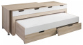 Два больших ящика, на шариковых направляющих, легко вместят постельные принадлежности, а спальное место, на выкатных колесиках, скроется в нише изделия.