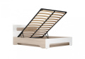 Двуспальная кровать с подъемным механизмом Палермо изготовлена из ЛДСП цвета Ясень Шимо светлый и МДФ Белый глянец.