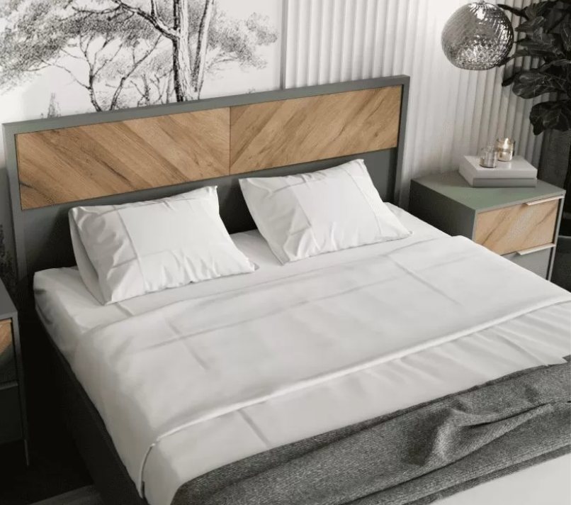 Кровать Сиена LOZ160х200 с подъемным механизмом цвет Дымчатый зеленый / Дуб вотан