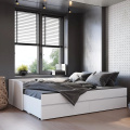 К данной модели кровати можно отдельно приобрести матрас-трансформер. «Симпл» - это современная коллекция функциональной мебели. В ней собраны все необходимые предметы для интерьера спальни, гостиной, детской комнаты, прихожей: шкафы, кровати, комоды, столы, тумбы. Коллекция полностью соответствует своему названию. Простой и стильный дизайн покорит ценителей минимализма. Отсутствует лицевая фурнитура. Мебель, выполненная в спокойных оттенках «белый» и «графит», идеально дополнит как классический, так и современный интерьер. Полноценный набор мебели позволяет экспериментировать с пространством.