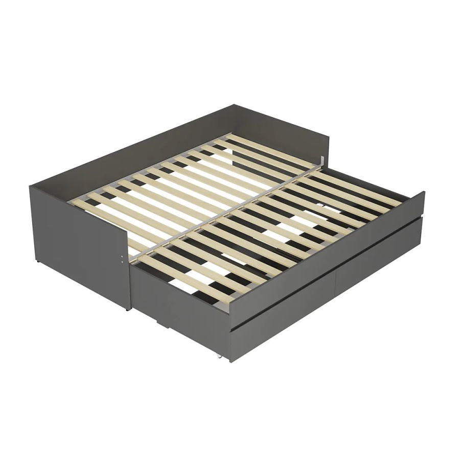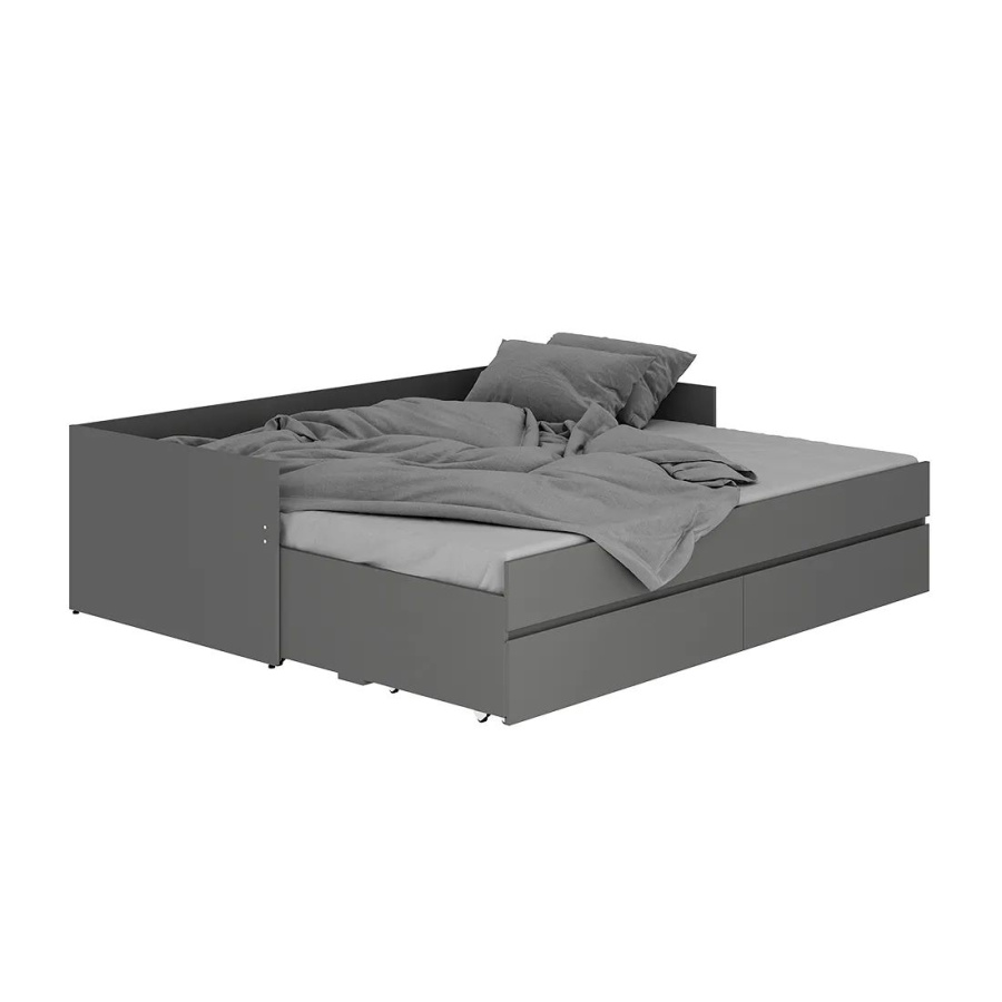 Кровать-трансформер из коллекции "Симпл" - это практичная и комфортная модель для современной спальни. Простой и стильный дизайн покорит ценителей минимализма. Данная модель удобна в использовании в небольших помещениях - при необходимости ее можно раздвинуть и получить дополнительное спальное место. Кровать оснащена выкатными ящиками, в которых легко размещается постельное белье, текстиль и другие вещи, которым не нашлось места в шкафу. Спальное место: 924*2000, в разложенном виде: 1800*2000. Основание для кровати в комплекте - ламели для раздвижных кроватей.