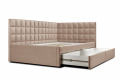 Угловая кровать будет актуальна как для детей, так и для взрослых. Мягкое изголовье создает дополнительный уют в интерьере. Качественная отстрочка добавляет объемности модели. Кровать выполнена из качественного микровелюра, который с легкостью чистится при необходимости. Изделие оснащено выкатными ящиками и ортопедическим основанием . Возможно выполнение на правый или левый угол по вашему желанию. Ящики выкатные, размер 940*560*190 м.Задняя спинка обшита технической тканью, при необходимости можно дополнительно заказать изготовление в основной ткани.