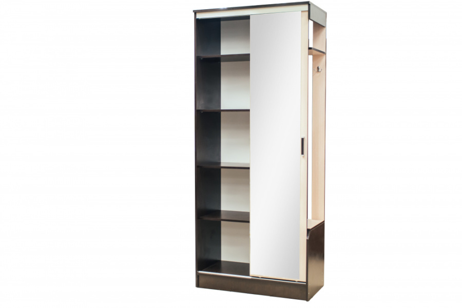 Благодаря дверце-купе прихожая 'Болеро' не занимает много места и смотрится стильно. Перемещайте дверь, чтобы открыть доступ к левой или правой секции. Здесь есть всё необходимое