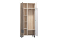 Вместительный двухсекционный шкаф с полками и штангой, имеет две глухих двери. Ручки дверей скрытые.