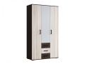 Имеет 3 ящика, зеркальную дверь. Шкаф оснащен металлической перекладиной и полками для одежды.