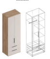 Шкаф имеет две створки, за которыми расположено достаточно места для хранения одежды, аксессуаров и других предметов. Два ящика предоставляют дополнительное пространство для хранения мелких вещей, например, белья или мелких аксессуаров.