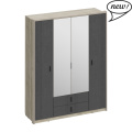 Шкаф 4х-дверный с зеркалами и ящиками ШЕР цвет Дуб серый / Сантьяго, 1896х600х2330 мм