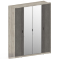Шкаф 4х-дверный с зеркалом ШЕР цвет Дуб серый / Айронвуд серебро, 1896х600х2330 мм