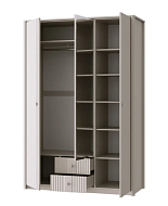 Внутренняя организация: включает штангу для вешалок (идеально для рубашек, платьев, пиджаков) и полки для сложенной одежды, белья и аксессуаров.