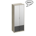 Шкаф двухдверный с зеркалом и ящиками ШЕР цвет Дуб серый / Айронвуд серебро, 980x600х2300 мм