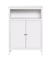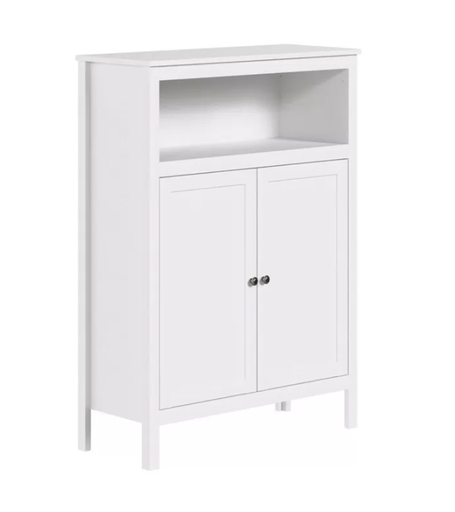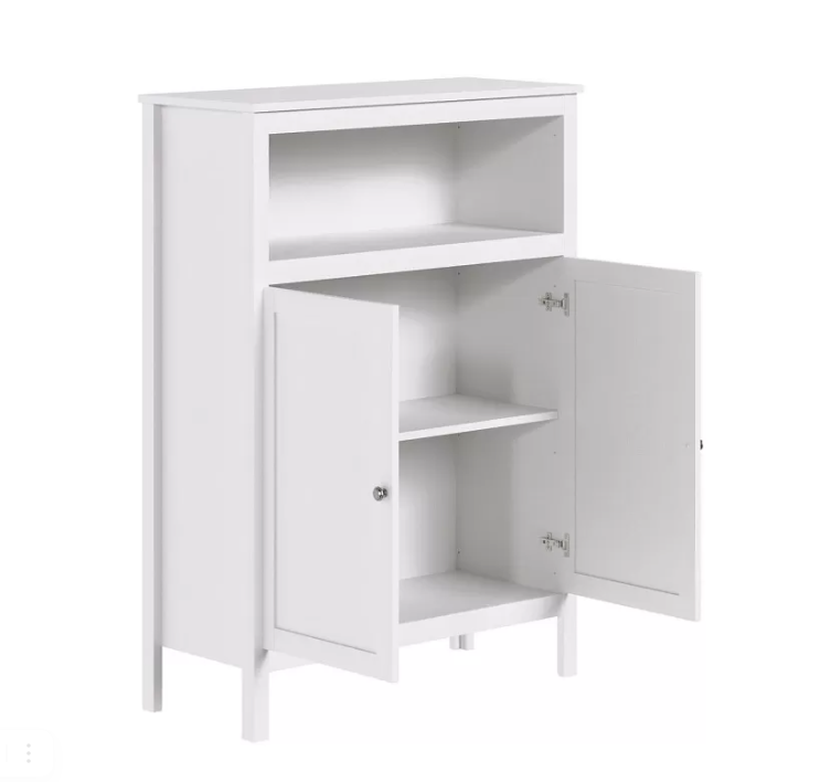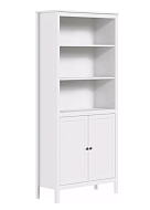 Конструкция: сочетает открытые полки (в верхней части) и закрытое пространство с двумя дверцами (в нижней части) — удобно для зонирования хранения.