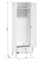 По периметру белого одностворчатого шкафа Ewa (Helga) проходит белая декоративная планка, а фасад украшают серебристые ручки. В остальном дизайн лаконичный и сдержанный. В оформлении преобладает шик, удобство, простота. Шкаф «Ева (Хельга)» радует плавной системой открывания, естественной красотой и идеальной сочетаемостью с другой мебелью коллекции Ewa (Helga).