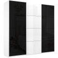 Шкаф-купе Широкий Прайм 3-х дверный (Стекло черное/Стекло белое) цвет Белый снег / ЛДСП, 2400x570x2300 мм