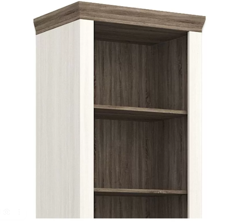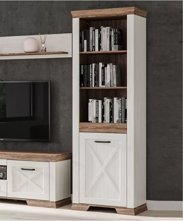 Шкаф разделен на 2 отделения: 3 вместительных открытых ниши и отделение с полками за распашной глухой дверью;