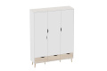 Шкаф трехстворчатый «Соната» с непроходными стенками будет одинаково гармонично смотреться как в составе мебельной композиции, так и установленный отдельно. В левой верхней части шкафа находятся две стационарные полки со штангой для одежды, правая верхняя часть представляет собой две стационарные и три съемные полки. Нижняя секция оборудована тремя выдвижными ящиками с фасадами, декорированными прорезными ручками, в которых можно хранить предметы, имеющие более утилитарное назначение.