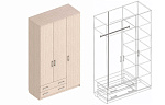 Шкаф «Универсал» 3х-ств с 2 ящиками цвет Пикар, 1200х510х2100 мм