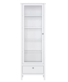 Напольная белая витрина Ewa (Helga) имеет узкую однодверную конструкцию с выдвижным ящиком и четырьмя полками. Все хранимые в пенале предметы остаются чистыми и сухими. Глухая створка со стеклом не пропускает внутрь пыль и влагу. В то же время, она обеспечивает обширный обзор и представляет предметы в выигрышном виде.