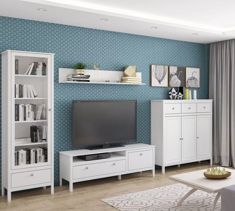 Простая витрина белого цвета с подсветкой органично впишется в интерьеры современного и скандинавского стиля, наполнить их светом и теплом.