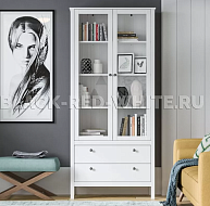 Как красиво оформить фарфоровый сервиз? Куда поставить статуэтки и раритетные вещи? Белая витрина с подсветкой Ewa (Helga) – отличное решение для демонстрации посуды, хрусталя и ценных вещей. Она изготовлена белорусским брендом BRW из древесно-стружечных плит, отвечающих самым строгим параметрам экологичности. При отделке фасадов используется МДФ с матовым покрытием. Ящик и дверь оснащена немецкой фурнитурой Blum/Hettich. Это круглые ручки серебристого цвета и роликовые направляющие.