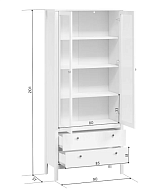 Узкая белая витрина Ewa (Helga) высотой 201 и шириной 65 см может быть использована как сервант для хранения посуды или книжный шкаф. Поэтому ее устанавливают в кухне, гостиной, обустраивают рабочий кабинет и уголок школьника. В двери установлено закаленное стекло, поэтому пенал полностью безопасен в эксплуатации.