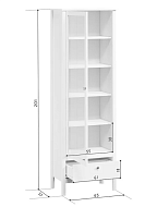 Напольная белая витрина Ewa (Helga) имеет узкую однодверную конструкцию с выдвижным ящиком и четырьмя полками. Все хранимые в пенале предметы остаются чистыми и сухими. Глухая створка со стеклом не пропускает внутрь пыль и влагу. В то же время, элегантная подсветка акцентирует лучшие черты расставленных вещей.