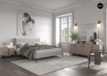 В серии представлены 1, 2, 3, 4-х дверные шкафы и дополнительные угловые модули. Фасады шкафов декорированы зеркалами с обработкой фацет. Высота шкафов составляет 2330 мм, а полезная глубина 568 мм. Шкафы изготовлены из материала ЛДСП 16 мм, задняя стенка из ХДФ. Фасады представлены как в однотонном так и в комбинированном варианте: створки из МДФ 16 мм под пленкой ПВХ Лофт голдэн пэлас, Айронвуд серебро, Дуб апрель темный, Дуб серый. В комодах, прикроватных тумбах и туалетном столике выдвижные ящики укомплектованы направляющими полного выдвижения. Дно ящика и задняя стенка выполнены из ХДФ, которое вставляется в паз. Фрезерованные крышки из ЛДСП 32 мм облицованы кромкой ПВХ толщиной 1 и 2 мм. Зеркало в овальной форме для туалетного столика комплектуется отдельно. Кровать изготовлена на новой платформе с более прочной конструкцией, мягким или жестким основанием толщиной 32 мм или 16 мм. Изголовье кровати состоит из трех мягких подушек обтянутых микровелюром. Завершающие оригинальные боковые элементы изголовья кровати планки толщиной 32 мм. Кровать представлена в двух вариантах: — с подъемным механизмом (укомплектована анатомической решеткой и вместительным бельевым ящиком внутри) — КРП — без подъемного механизма (укомплектована анатомической решеткой) — КР.