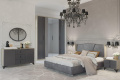 В серии представлены 1, 2, 3, 4-х дверные шкафы и дополнительные угловые модули. Фасады шкафов декорированы зеркалами с обработкой фацет. Высота шкафов составляет 2330 мм, а полезная глубина 568 мм. Шкафы изготовлены из материала ЛДСП 16 мм, задняя стенка из ХДФ. Фасады представлены как в однотонном так и в комбинированном варианте: створки из МДФ 16 мм под пленкой ПВХ Лофт голдэн пэлас, Айронвуд серебро, Дуб апрель темный, Дуб серый. В комодах, прикроватных тумбах и туалетном столике выдвижные ящики укомплектованы направляющими полного выдвижения. Дно ящика и задняя стенка выполнены из ХДФ, которое вставляется в паз. Фрезерованные крышки из ЛДСП 32 мм облицованы кромкой ПВХ толщиной 1 и 2 мм. Зеркало в овальной форме для туалетного столика комплектуется отдельно. Кровать изготовлена на новой платформе с более прочной конструкцией, мягким или жестким основанием толщиной 32 мм или 16 мм. Изголовье кровати состоит из трех мягких подушек обтянутых микровелюром. Завершающие оригинальные боковые элементы изголовья кровати планки толщиной 32 мм. Кровать представлена в двух вариантах: — с подъемным механизмом (укомплектована анатомической решеткой и вместительным бельевым ящиком внутри) — КРП — без подъемного механизма (укомплектована анатомической решеткой) — КР.