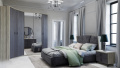 В серии представлены 1, 2, 3, 4-х дверные шкафы и дополнительные угловые модули. Фасады шкафов декорированы зеркалами с обработкой фацет. Высота шкафов составляет 2330 мм, а полезная глубина 568 мм. Шкафы изготовлены из материала ЛДСП 16 мм, задняя стенка из ХДФ. Фасады представлены как в однотонном так и в комбинированном варианте: створки из МДФ 16 мм под пленкой ПВХ Лофт голдэн пэлас, Айронвуд серебро, Дуб апрель темный, Дуб серый. В комодах, прикроватных тумбах и туалетном столике выдвижные ящики укомплектованы направляющими полного выдвижения. Дно ящика и задняя стенка выполнены из ХДФ, которое вставляется в паз. Фрезерованные крышки из ЛДСП 32 мм облицованы кромкой ПВХ толщиной 1 и 2 мм. Зеркало в овальной форме для туалетного столика комплектуется отдельно. Кровать изготовлена на новой платформе с более прочной конструкцией, мягким или жестким основанием толщиной 32 мм или 16 мм. Изголовье кровати состоит из трех мягких подушек обтянутых микровелюром. Завершающие оригинальные боковые элементы изголовья кровати планки толщиной 32 мм. Кровать представлена в двух вариантах: — с подъемным механизмом (укомплектована анатомической решеткой и вместительным бельевым ящиком внутри) — КРП — без подъемного механизма (укомплектована анатомической решеткой) — КР.
