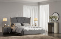 В серии представлены 1, 2, 3, 4-х дверные шкафы и дополнительные угловые модули. Фасады шкафов декорированы зеркалами с обработкой фацет. Высота шкафов составляет 2330 мм, а полезная глубина 568 мм. Шкафы изготовлены из материала ЛДСП 16 мм, задняя стенка из ХДФ. Фасады представлены как в однотонном так и в комбинированном варианте: створки из МДФ 16 мм под пленкой ПВХ Лофт голдэн пэлас, Айронвуд серебро, Дуб апрель темный, Дуб серый. В комодах, прикроватных тумбах и туалетном столике выдвижные ящики укомплектованы направляющими полного выдвижения. Дно ящика и задняя стенка выполнены из ХДФ, которое вставляется в паз. Фрезерованные крышки из ЛДСП 32 мм облицованы кромкой ПВХ толщиной 1 и 2 мм. Зеркало в овальной форме для туалетного столика комплектуется отдельно. Кровать изготовлена на новой платформе с более прочной конструкцией, мягким или жестким основанием толщиной 32 мм или 16 мм. Изголовье кровати состоит из трех мягких подушек обтянутых микровелюром. Завершающие оригинальные боковые элементы изголовья кровати планки толщиной 32 мм. Кровать представлена в двух вариантах: — с подъемным механизмом (укомплектована анатомической решеткой и вместительным бельевым ящиком внутри) — КРП — без подъемного механизма (укомплектована анатомической решеткой) — КР.