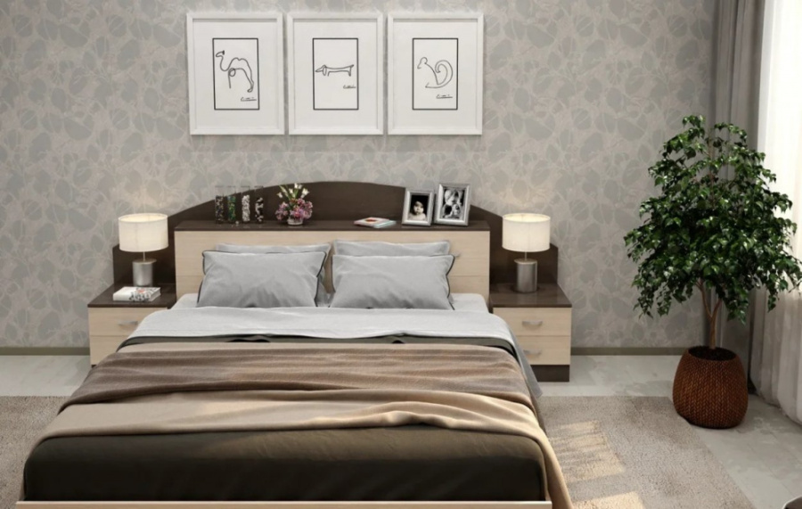- Кровать (ШхВхГ): 1652х986х2232 мм. Размер спального места: 1600х2000 мм. Основание кровати - ДСП. Размер ниши в изголовье кровати (ШхВхГ): 1620х570х200 мм
