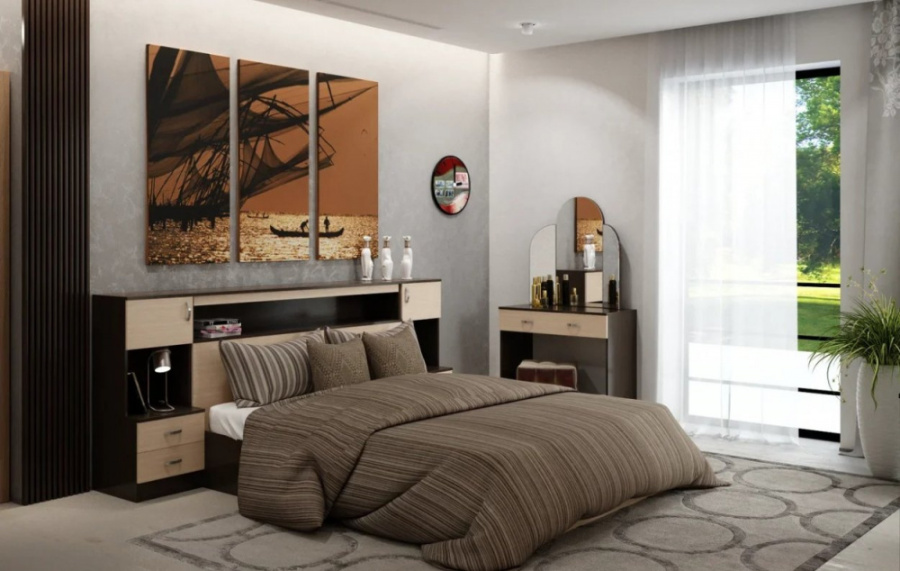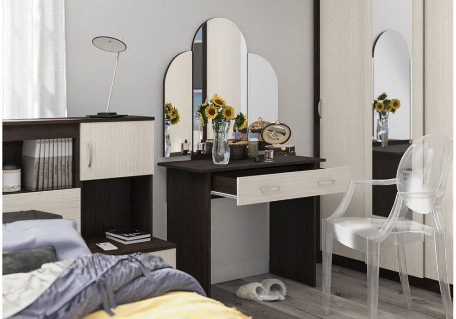 Спальный гарнитур "Бася-2 (трельяж)" цвет Венге / Беленый дуб