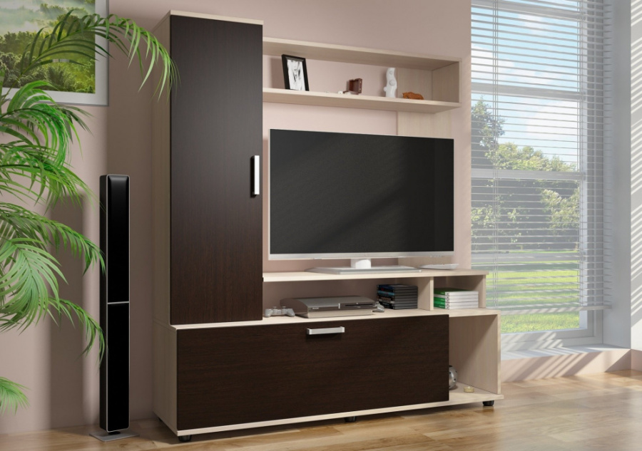 Стенка под телевизор TV-2 от мебельной компании 'Стиль' сочетает в себе оригинальный дизайн, универсальность и многофункциональность, поэтому прекрасно дополнит интерьер Вашей гостиной. Два вместительных закрытых отделения и удобные полки послужат отличным местом для хранения книг, журналов, дисков и других необходимых Вам вещей, а телевизор отлично впишется в специальную для него нишу.
