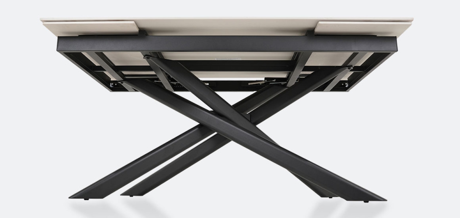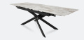 Обеденный раскладной стол Делио. Столешница выполнена из синтезированного камня - устойчивый, прочный и экологичный материал. Чуть закруглённые углы и 3 варианта цветового решения столешницы - беспроигрышный вариант для любой гостиной. По бокам стола расположены дополнительные раздвижные элементы, которые увеличивают полезную площадь столешницы на 40 или 80 см в длину.
