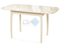 Столешница стола выполнена из ЛДСП 16мм, покрыта пленкой ПВХ и стеклом 4мм. Ножки стола выполнены из массива бука. Механизм раскладывания: синхронный.