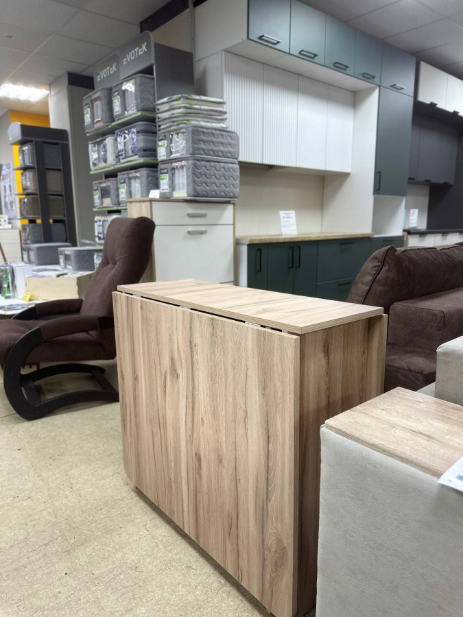 Экономия пространства. В сложенном виде стол занимает минимум места, освобождая площадь для передвижения.